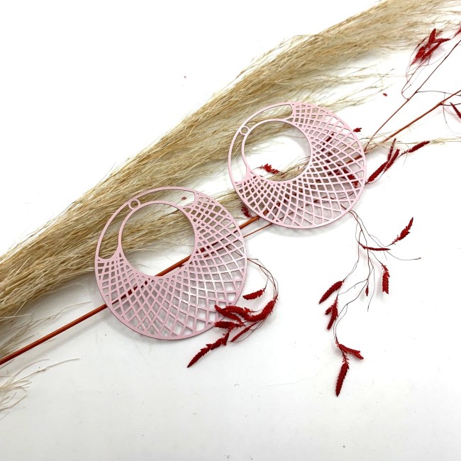 2 Pendentifs Filigranés Ronds Evidés, Pendentif Croisillon Rose , 41 mm
