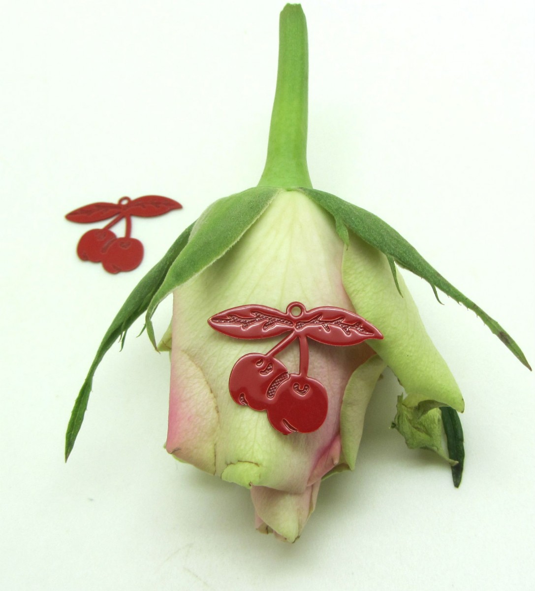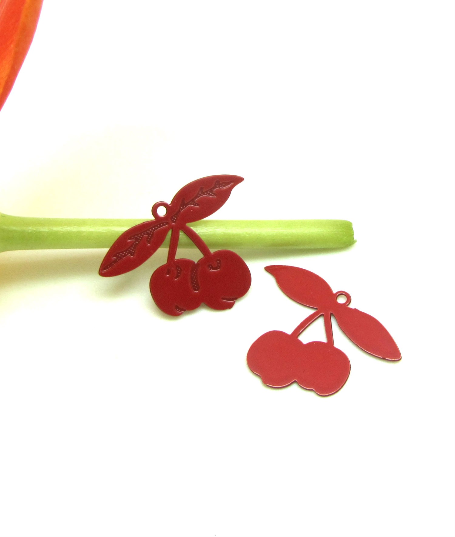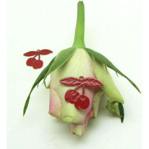 Exprimez votre gourmandise avec ces Breloques Cerises rouges en métal à intégrer dans vos colliers et boucles d'oreilles.