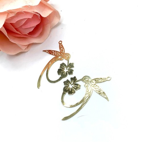 1 Pendentif Estampe Grand Colibri Hibiscus Graphique Doré, 31*29 mm