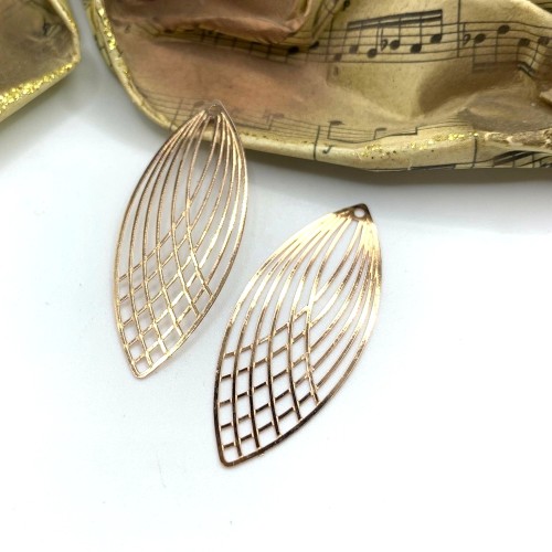 2 Pendentifs Filigranés Estampes Ovales Or Rose- 40*16 mm