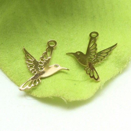 4 Breloques Filigranées Oiseau Colibri Doré - 16*13 mm