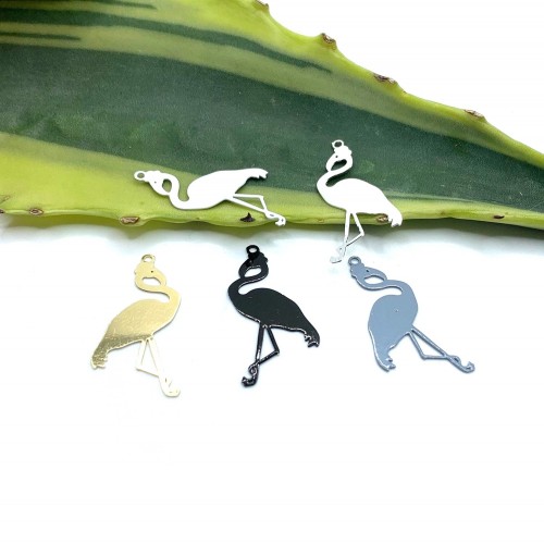 10 Breloques Flamants Colores, Breloque Stylisée, Lot 1, 28*5 mm