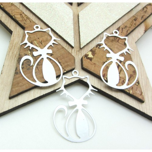 2 Pendentifs Chat Blanc Silhouette, Animal, 33*20 mm