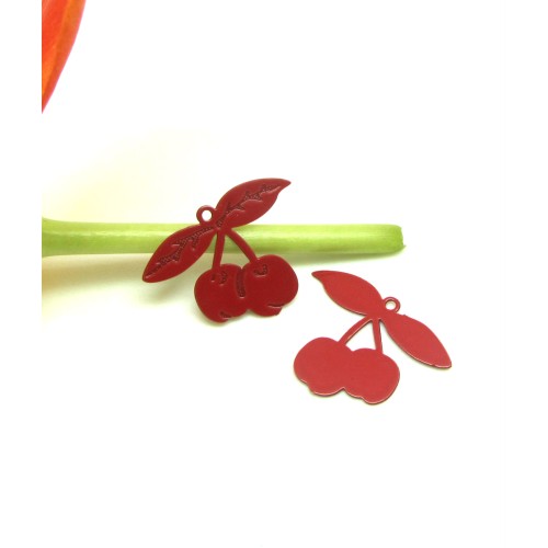 4 Breloques Cerises Doubles Rouges, 24*21 mm